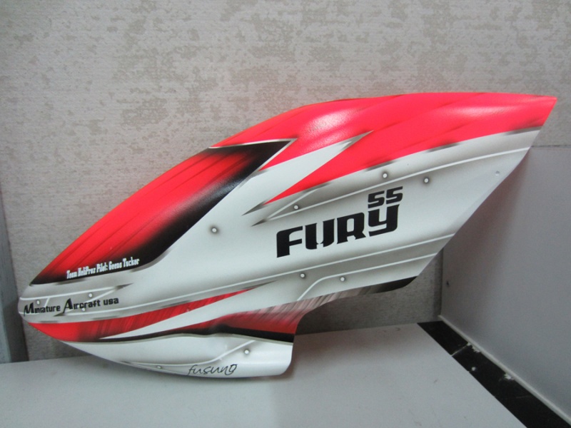 Below, is a photo of the newest addition to my Fusuno canopy collection. Which brings me to another topic. I wanted a Red Assassin canopy for my new Miniature Aircraft Fury 55, but Fusuno did not offer that design for the Fury 55. That was not a problem at all, as I contacted their sales department to put in a special request for one. They were more than happy to custom paint the Red Assassin design on the Fury 55 canopy, AND put my name on it for no additional cost. How many companies would be willing to do that?